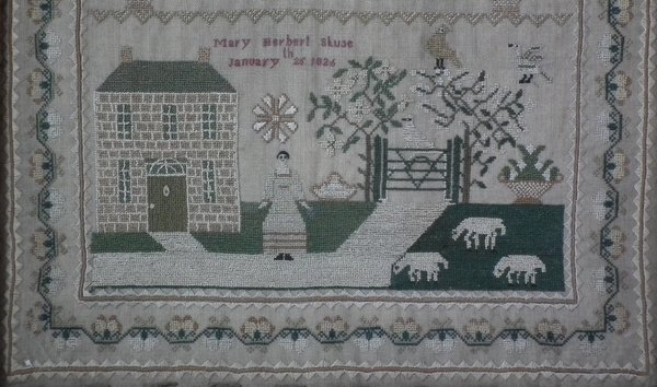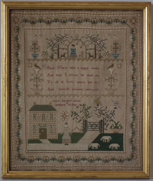 George IV, dated 1826. 14.5ins by 11.5ins wide. 1826 Sampler by Mary Herbert Skuse.