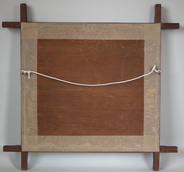 Fixed to linen with wood backing.