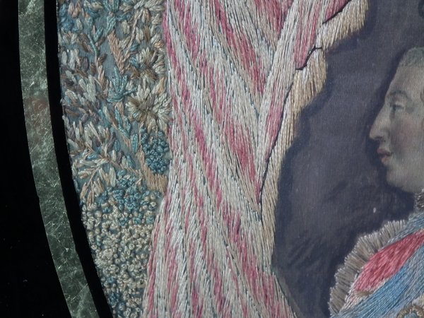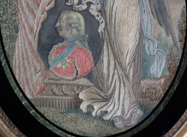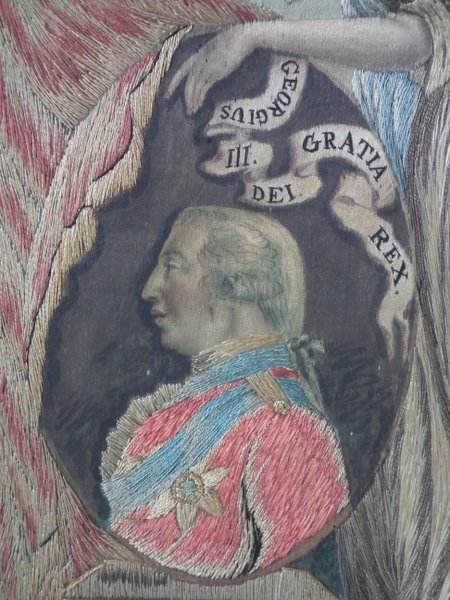 This embroidery was possibly made to commemorate the Golden Jubilee of George III, in October 1809.