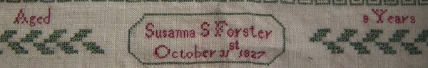 'Aged 8 Years Susanna S Forster October 31st 1827'.