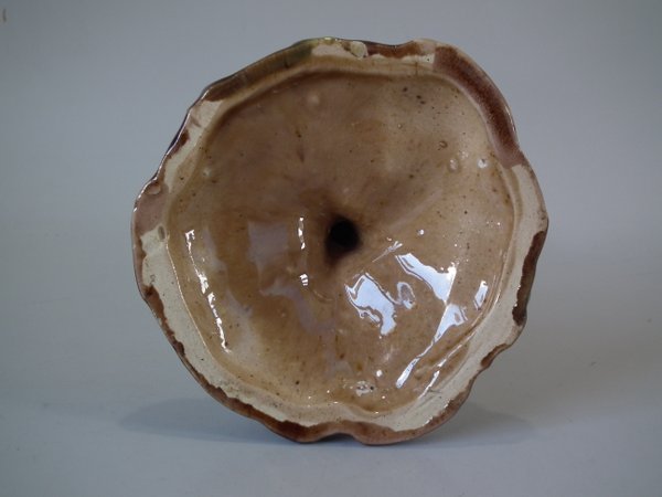 KILN EFFECTS: a speck of kiln detritus caught in the glaze below the sconce rim.