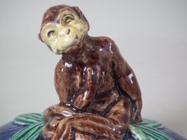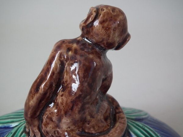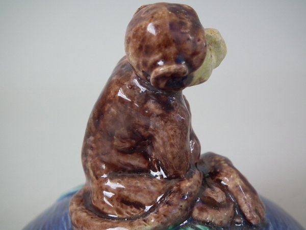 RESTORATION: Top half of monkey reglued and joins retouched.