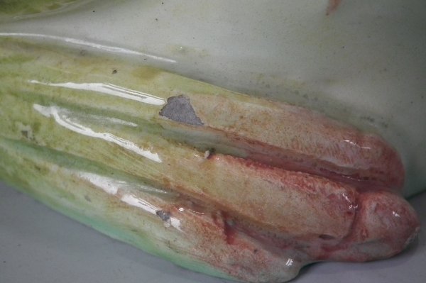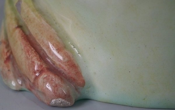 Good. No restoration. Flakes to feet, eye, eyebrow and handle.