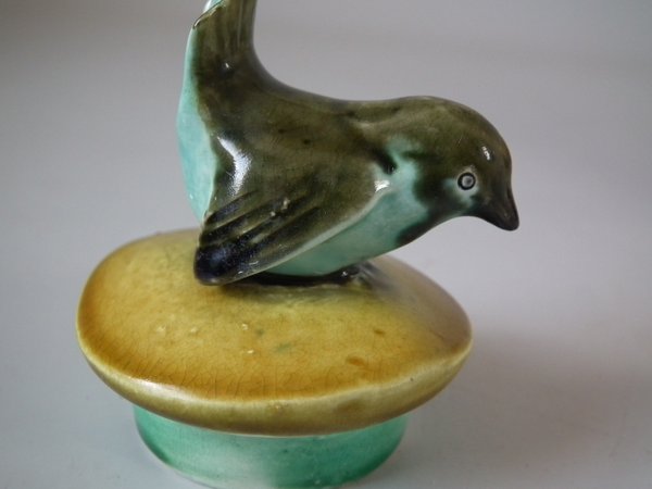 RESTORATION. Bird reattached to lid and join retouched.