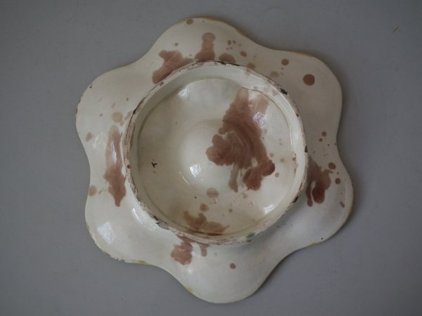 Victorian, circa 1868. 7.2ins high, 7.2ins wide, 1ins depth. Wedgwood Majolica escargot server which features six wells moulded in the form of fish heads. Colouration: brown, green, ochre, are predominant.