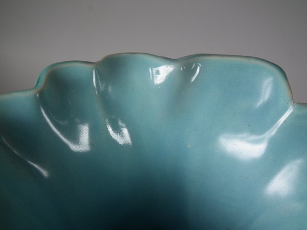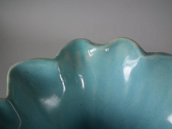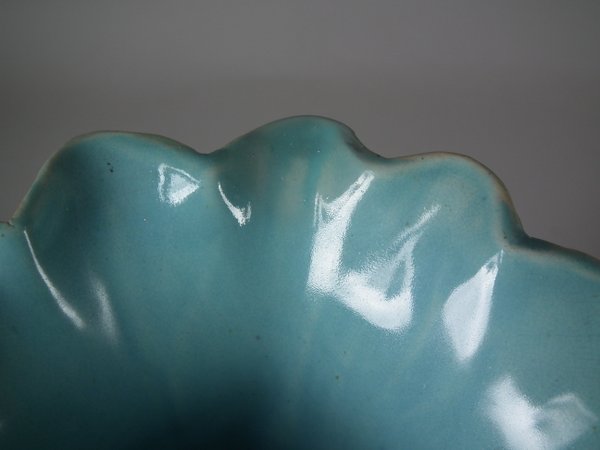 thin glaze application to the green glaze, in places.