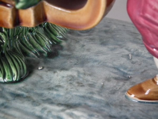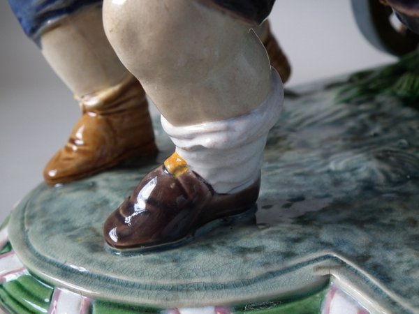 Right boy reglued and joins retouched where feet join the base,