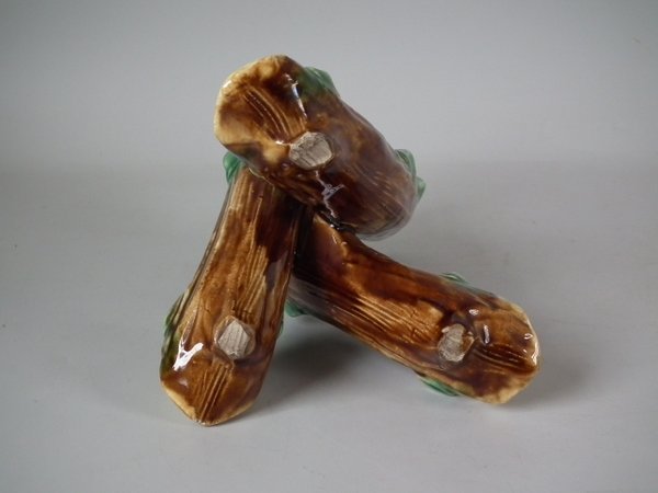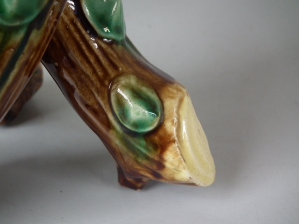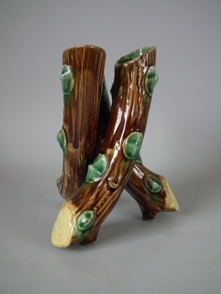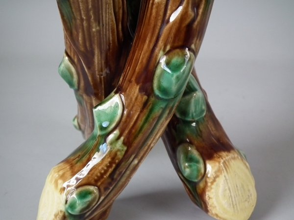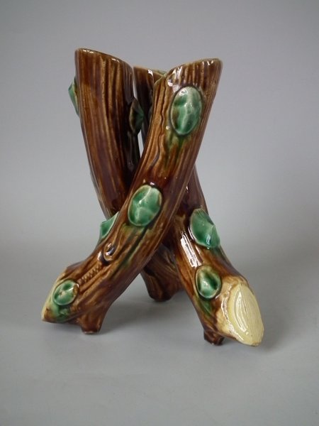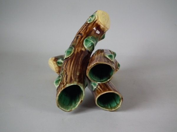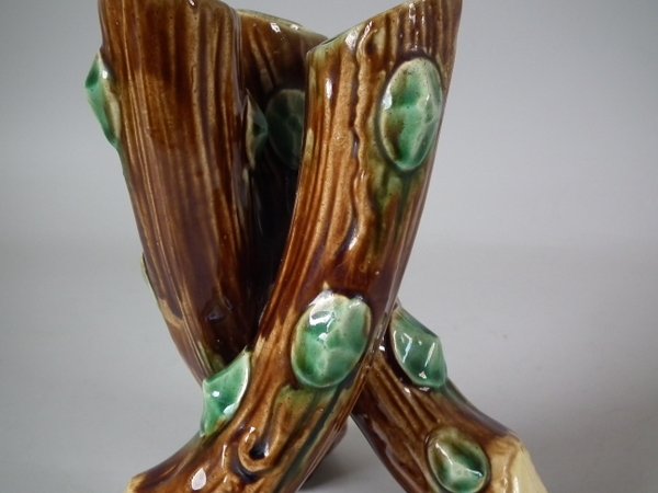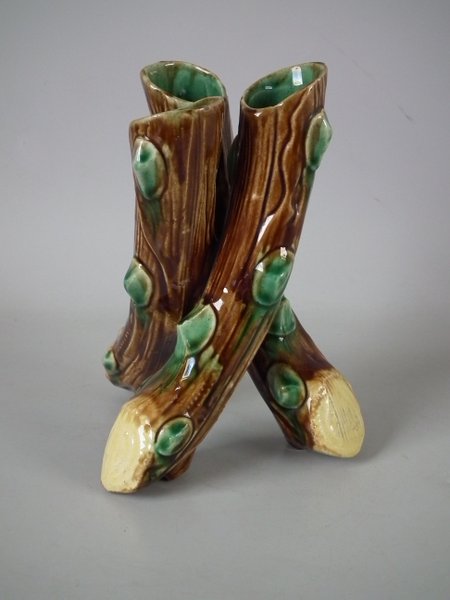 Majolica posy holder which features three branches.