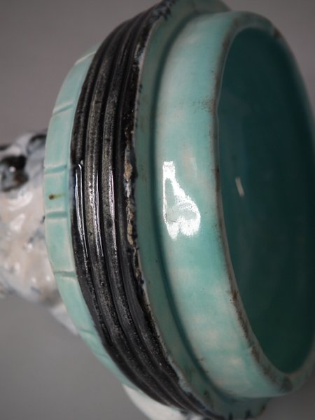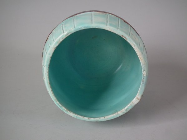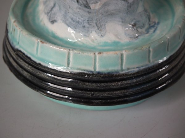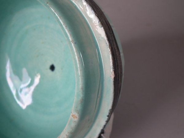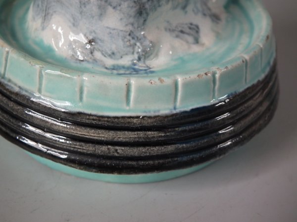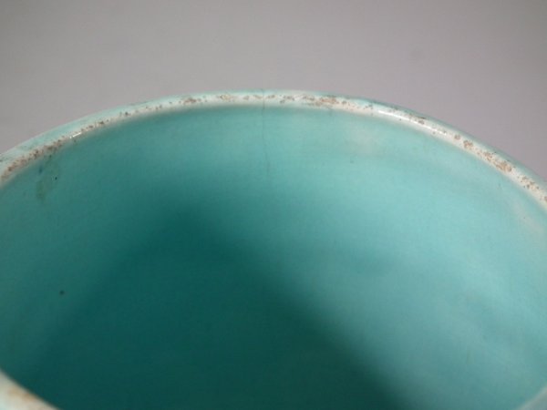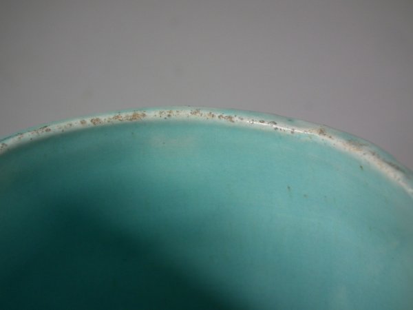 KILN EFFECTS: thin glaze application to turquoise glaze.