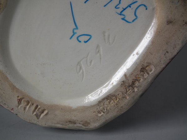 The piece bears maker's marks for the B & L pottery.