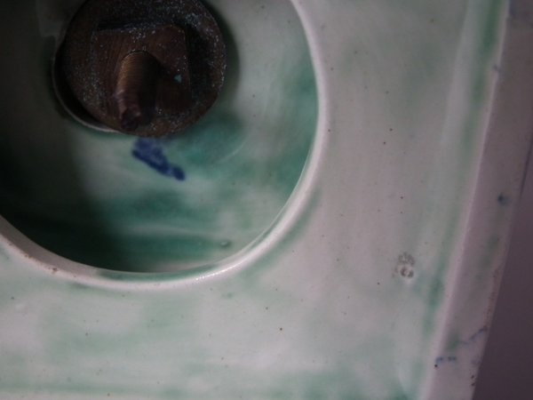 Filled chip to base where it meets urn.