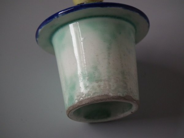Colouration: cobalt blue, ochre, turquoise, are predominant.