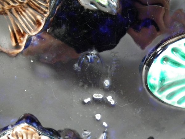 Colouration: cobalt blue, turquoise, ochre, are predominant.