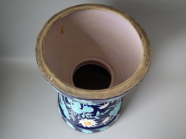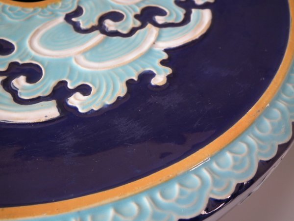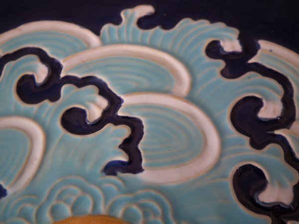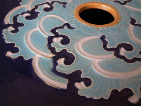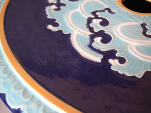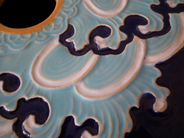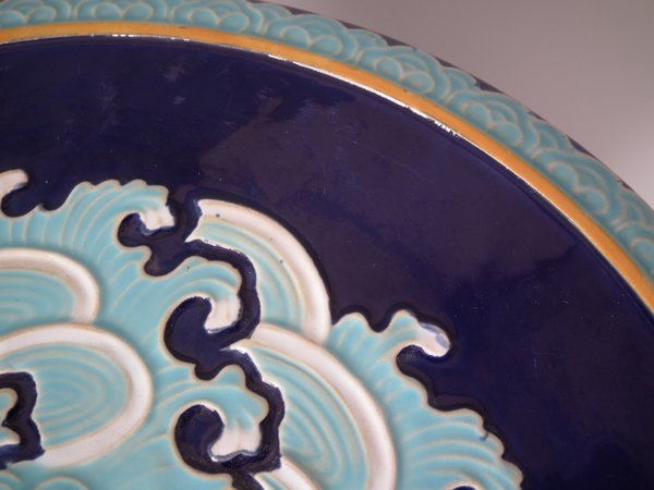 Colouration: cobalt blue, turquoise, white, are predominant.