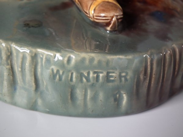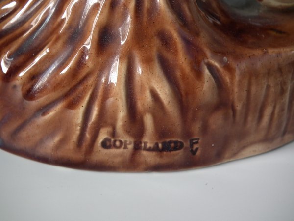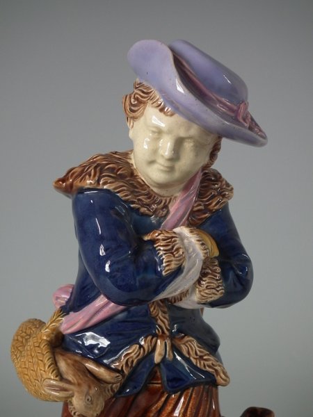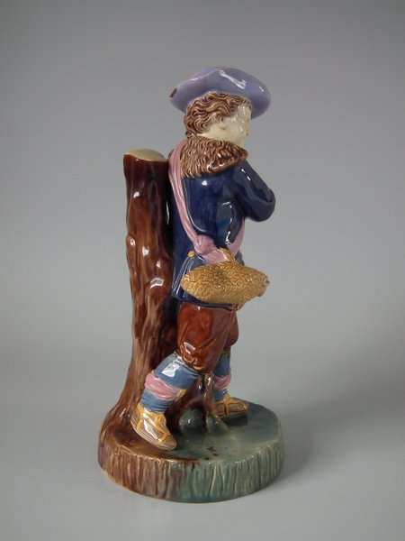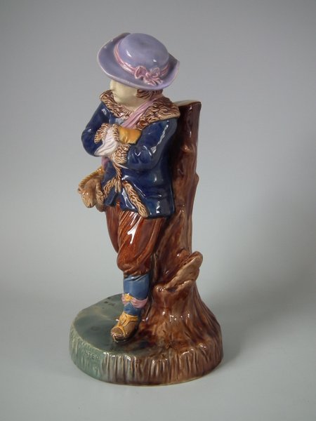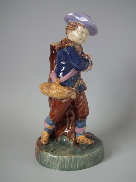 Victorian, circa 1870. 11.4ins high, 5.5ins wide, 5.3ins depth. Copeland Majolica figure which features a boy wearing ice skates,