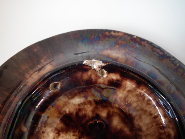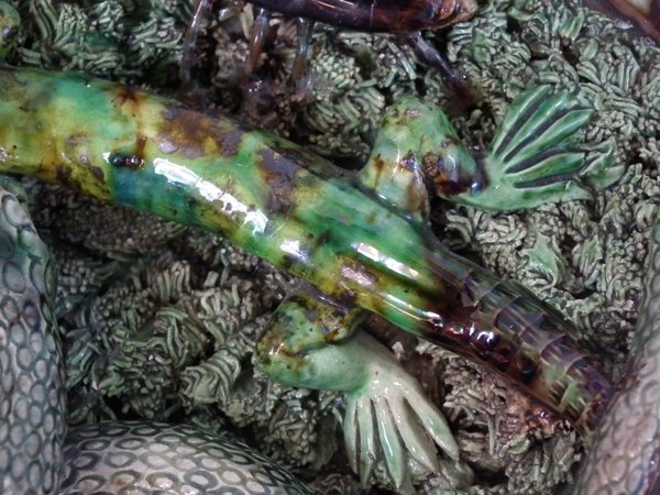 Lizard's head reglued and join retouched.