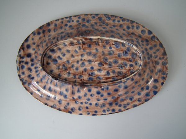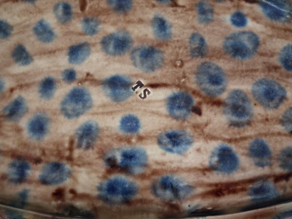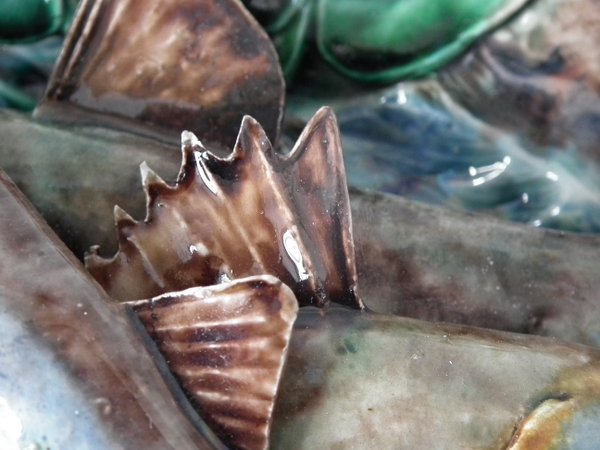 CONDITION: Good. KILN EFFECTS: over glazed break to smallest fish tail fin.