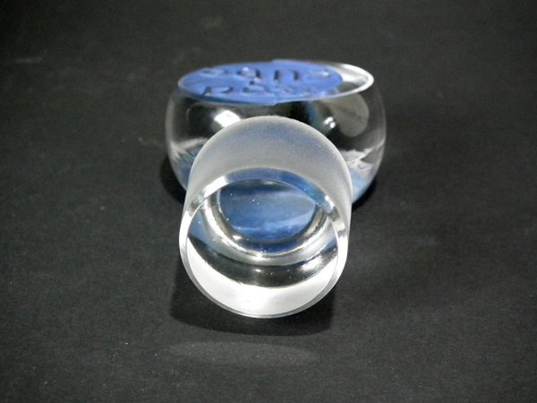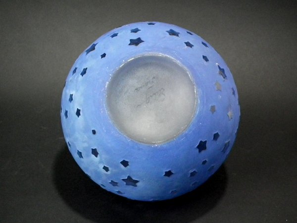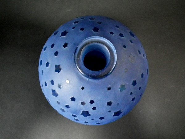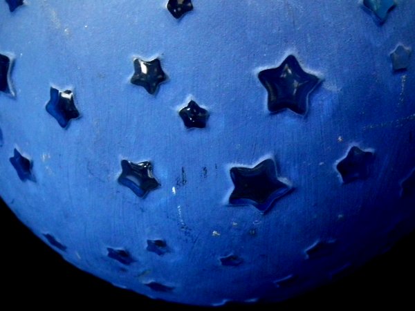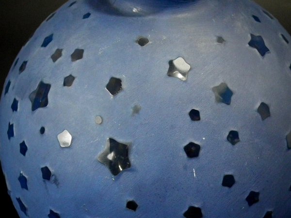 Clear glass with blue staining. This pattern features stars.