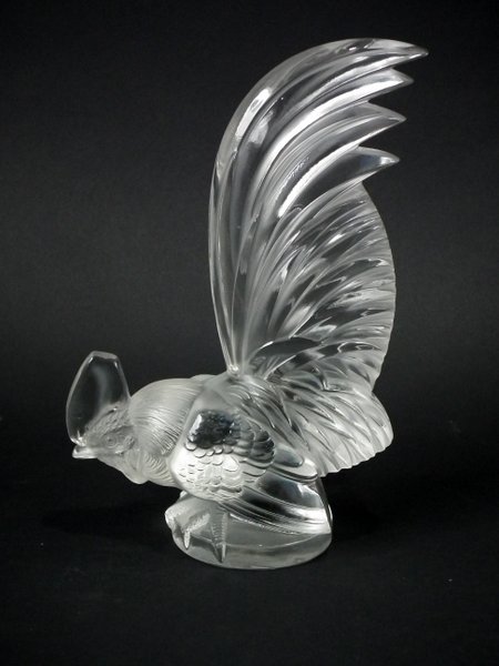 Rene Lalique Clear and frosted Glass 'Coq Nain' Mascot.