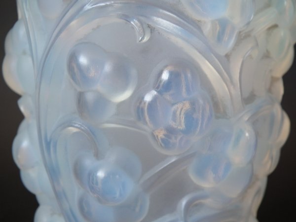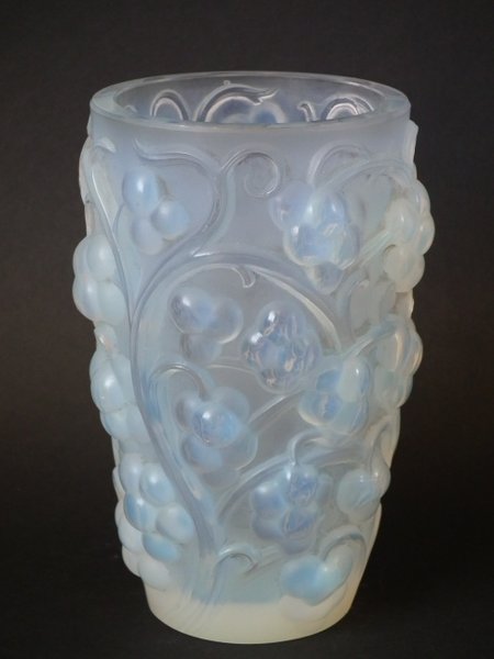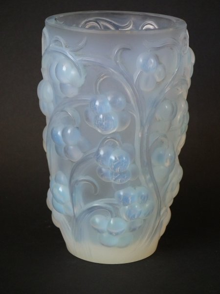 Introduced in 1928. Height: 15.9cm (6.3ins). Width: 10cm (3.94ins). Depth: 10cm (3.94ins).. Rene Lalique Opalescent Glass 'Raisins' Vase.