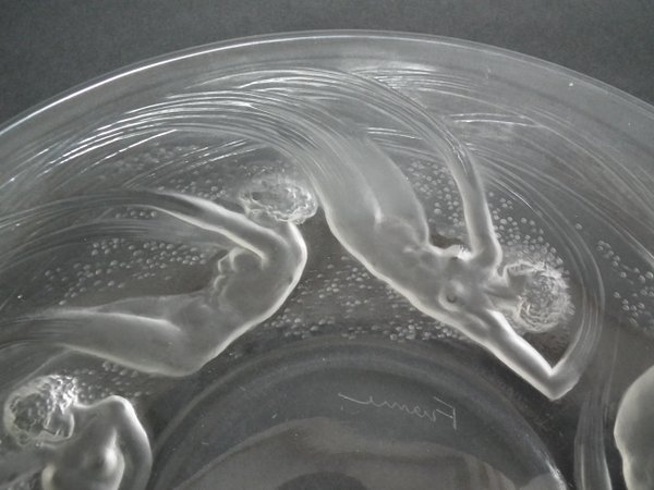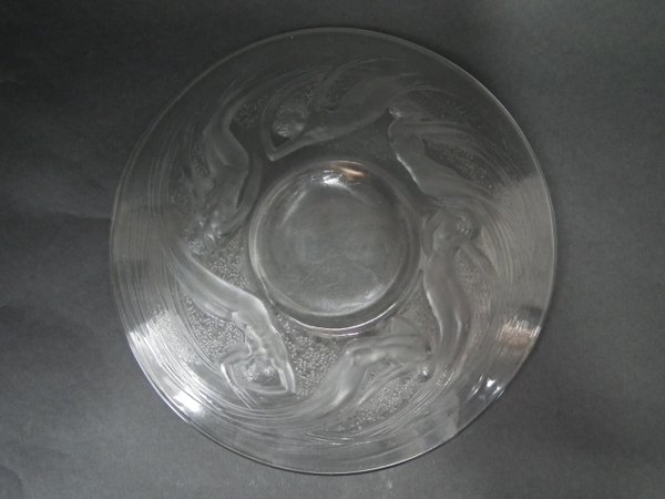 Introduced in 1921. Height: 2.5cm (0.98ins). Width: 27.5cm (10.83ins). Depth: 27.5cm (10.83ins).. Rene Lalique Clear and frosted Glass 'Ondines' Plate.