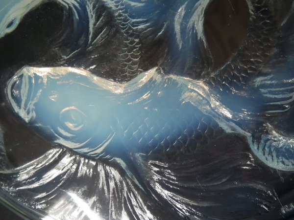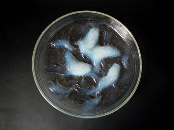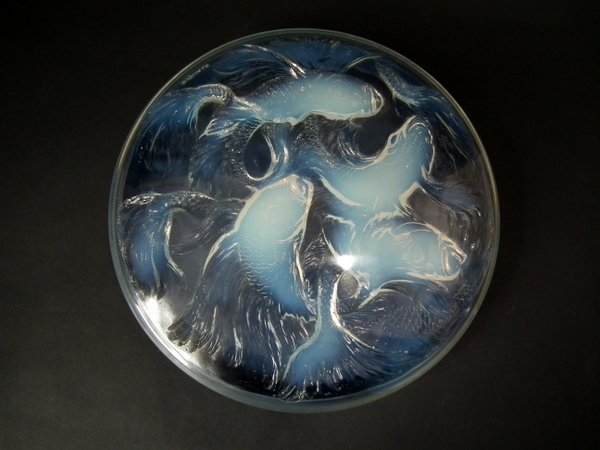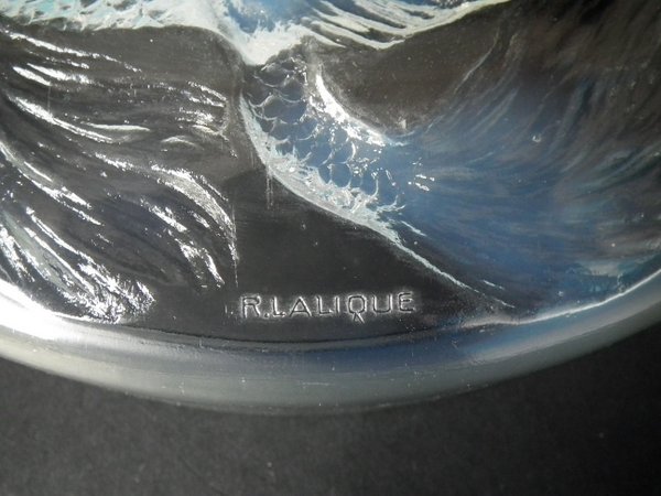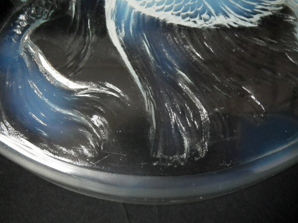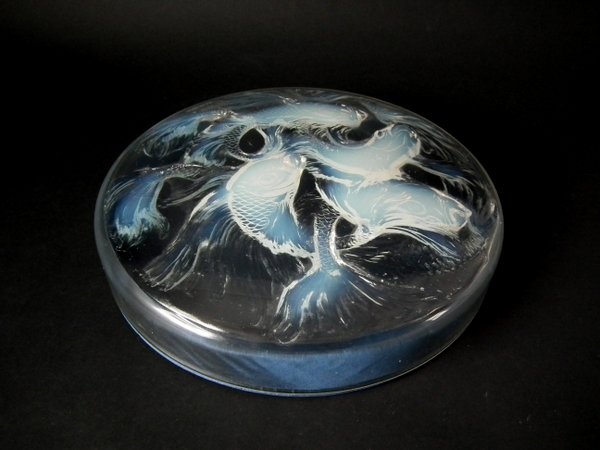 Introduced in 1921. Height: 5cm (7.17ins). Width: 25.5cm (10.04ins). Depth: 25.5cm (10.04ins). Rene Lalique Clear & Opalescent Glass 'Cyprins' Box.