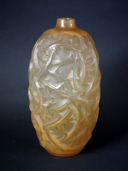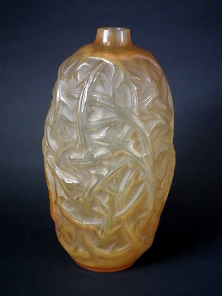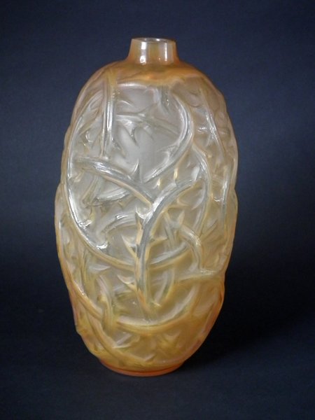 Rene Lalique Cased Glass 'Ronces' Vase. Butterscotch colour.