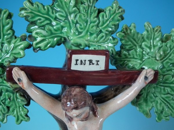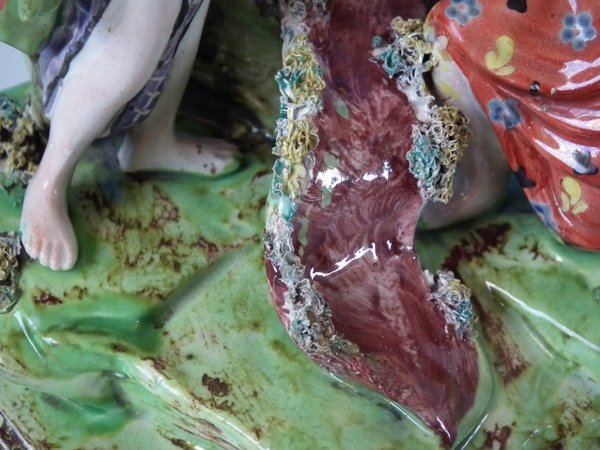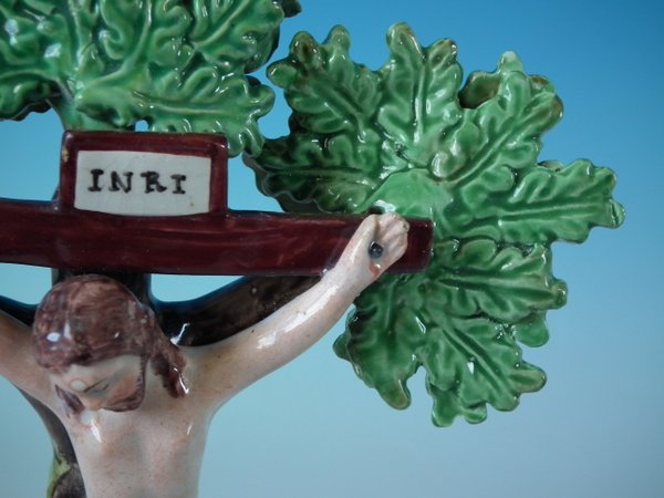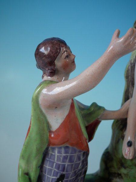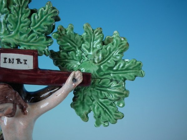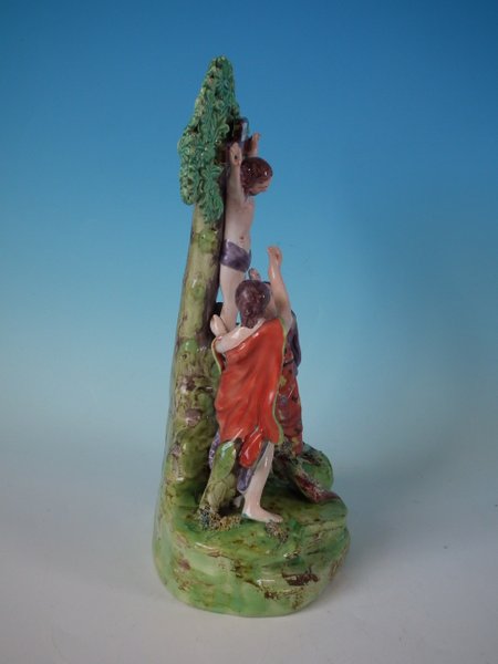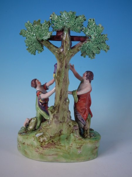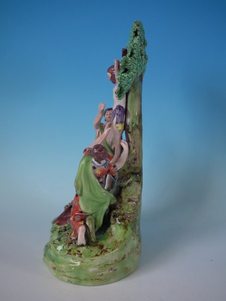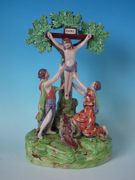pre-Victorian, circa 1820. 10ins high, 4.1ins wide, 6.1ins depth. Staffordshire Pottery pearlware bocage group with a religious theme