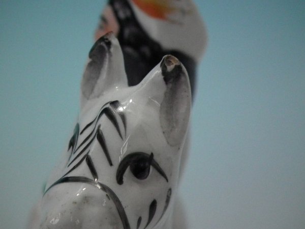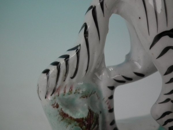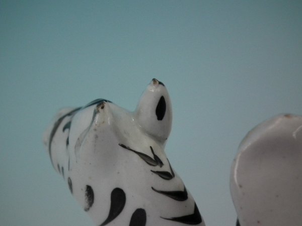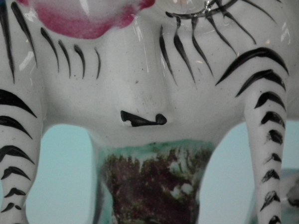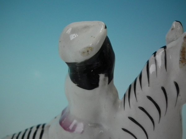 Paint loss to his shoe, eyebrow and zebra's markings.