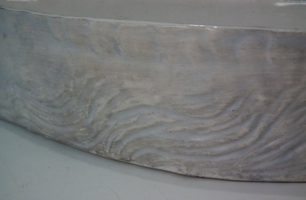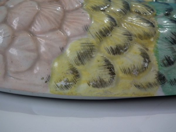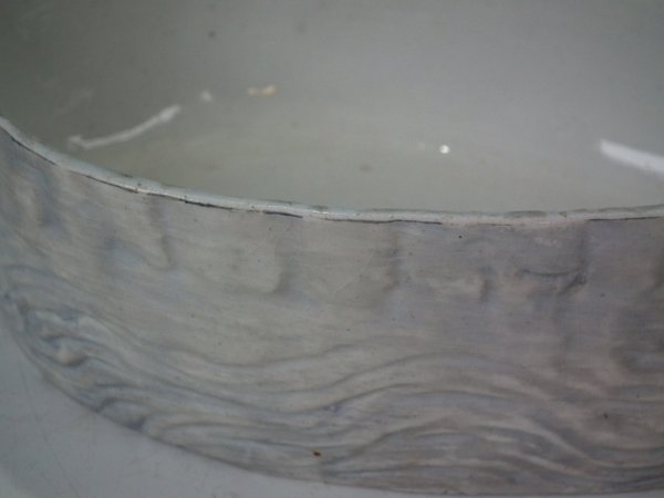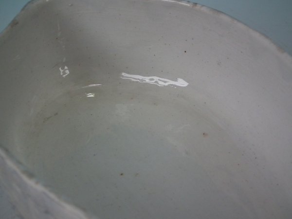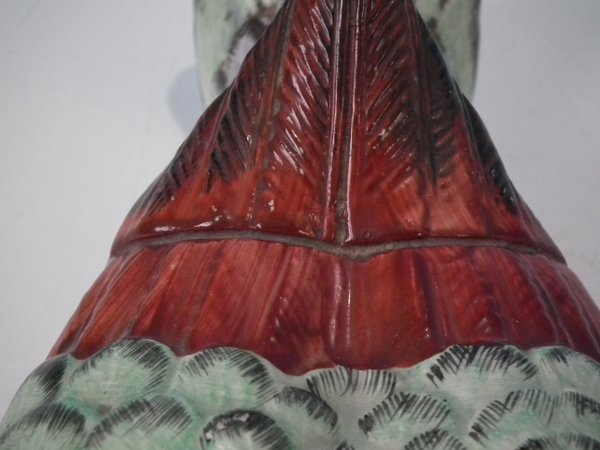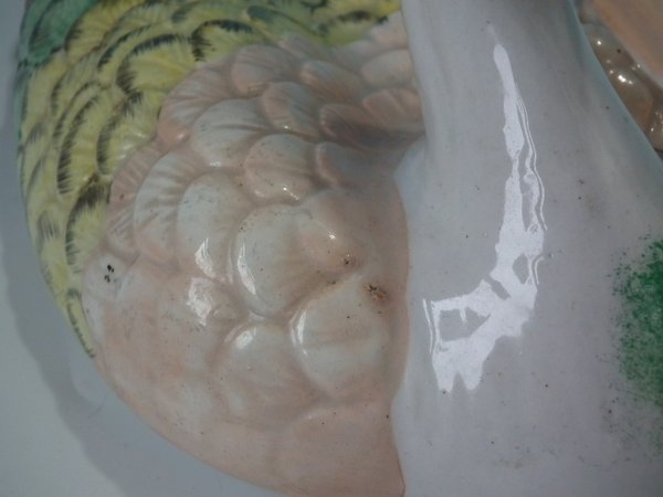 KILN EFFECTS: kiln grit caught in the glaze to the duck's shoulders;