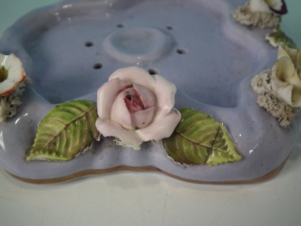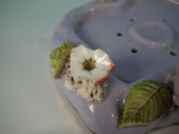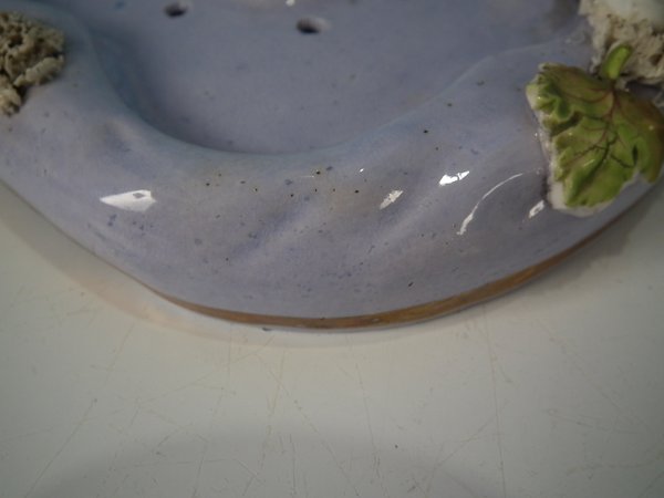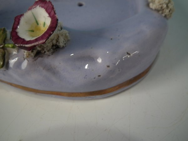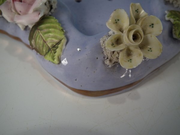 Dull gilt embellishment. Decorated 'in the round' - decoration to front and reverse. Open bottomed.