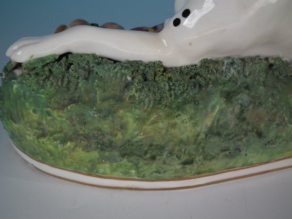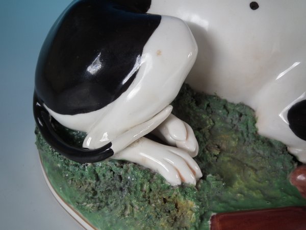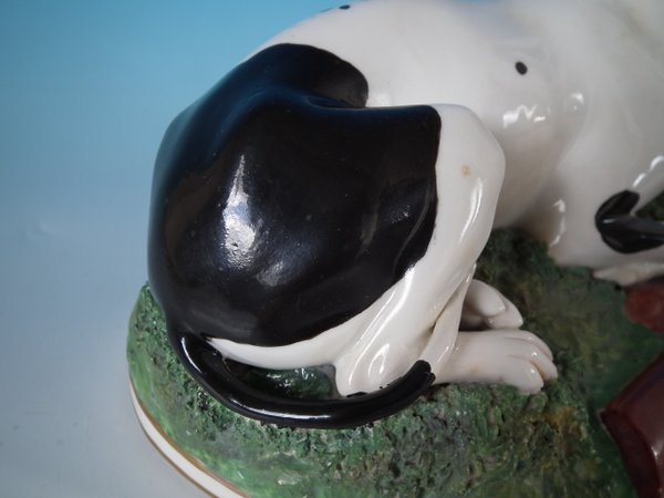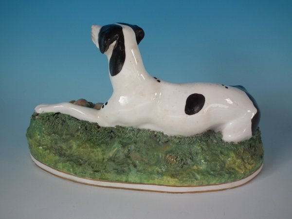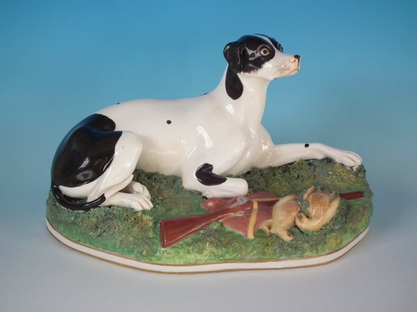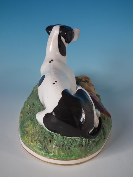 Victorian, circa 1840. 6.7ins high, 11ins wide, 6.3ins depth. Copeland & Garrett Staffordshire Pottery figure which features a fine quality hunting dog,