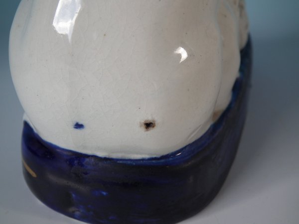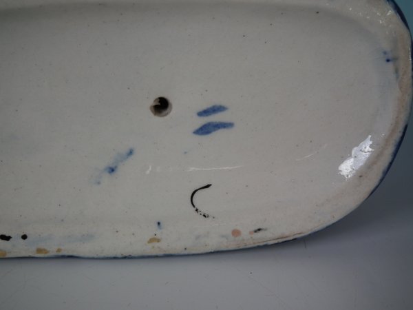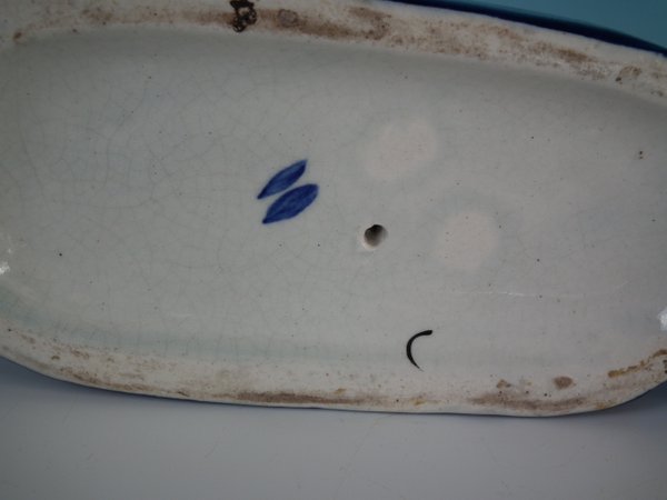 the cobalt blue glaze is matt in places, probably due to original mis-firing.