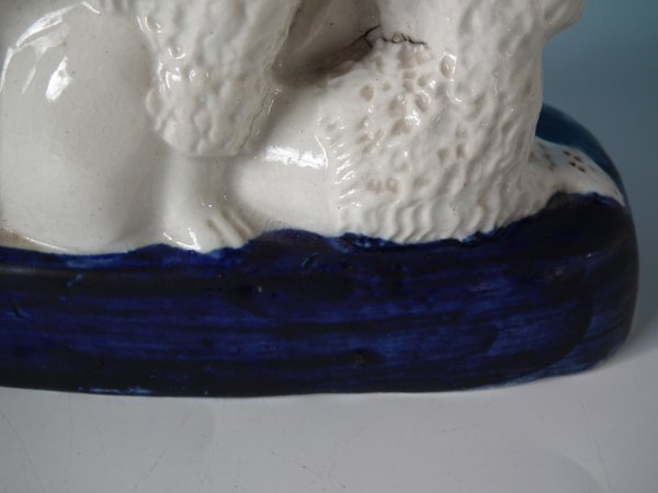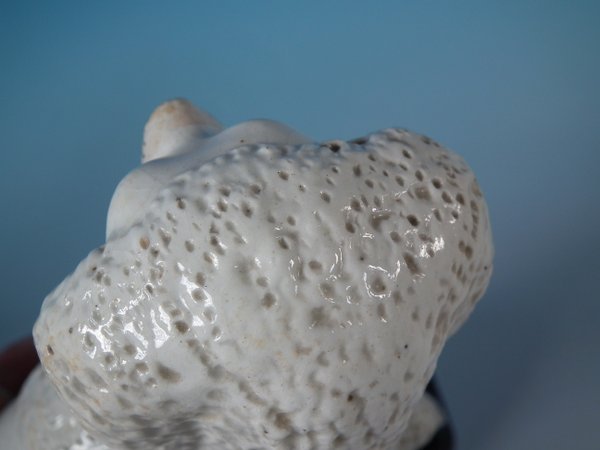 KILN EFFECTS: shrinkage cracks around recumbent poodle;