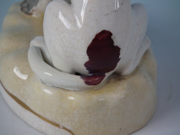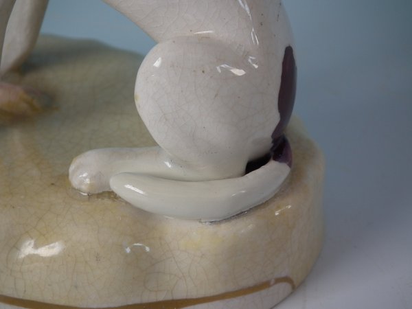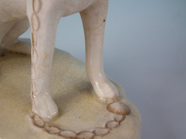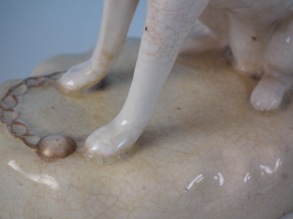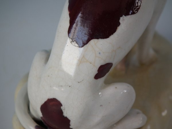 RESTORATION. Stabilised and retouched hairline to dog's front left leg.
