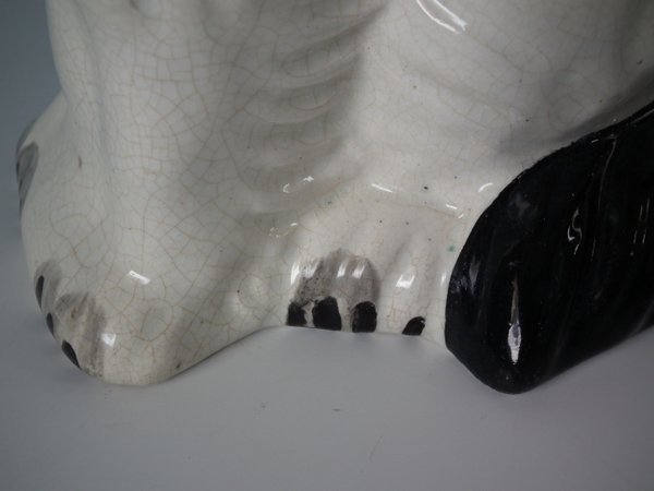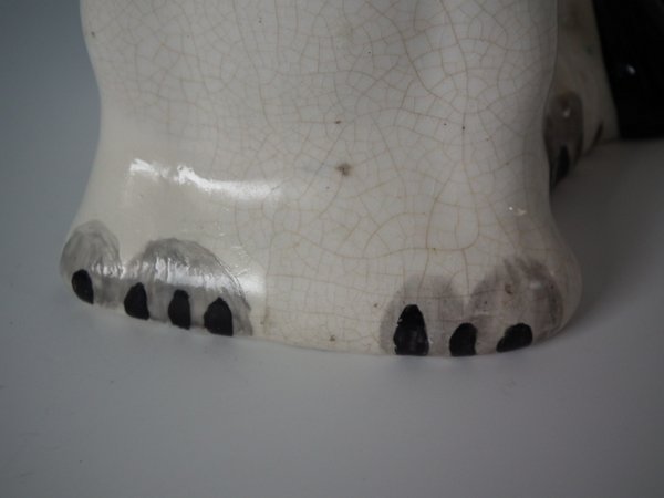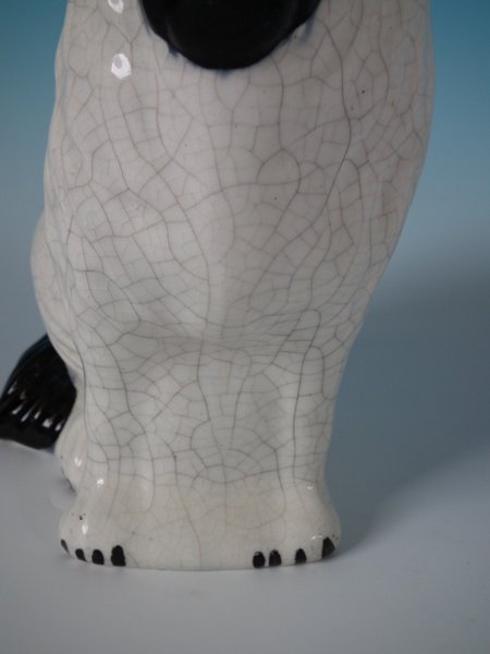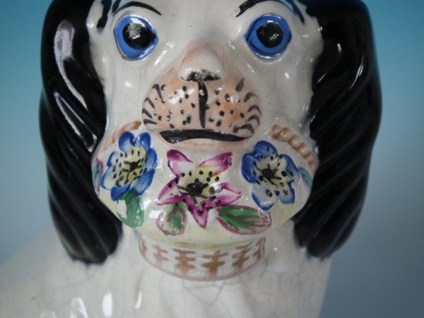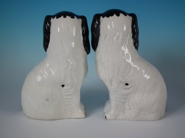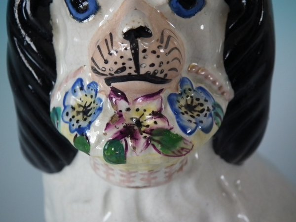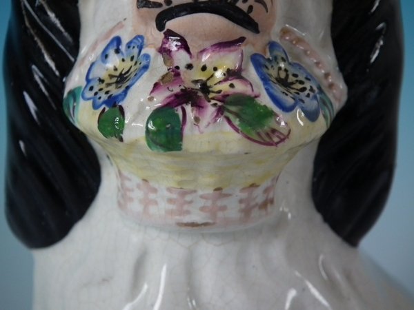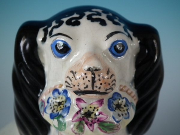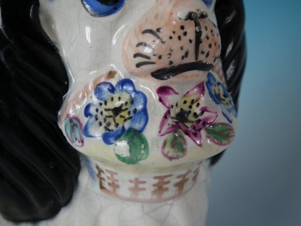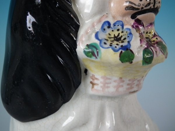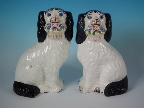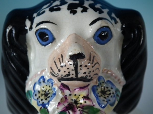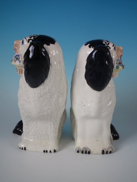 Victorian, circa 1860. Tallest is 8.1ins high, 5.1ins wide, 3.9ins depth. Pair of Staffordshire Pottery figures which feature a Disraeli spaniel (The curls on the head represent Disraeli's, elected Prime Minister 1868 and Queen Victoria’s favourite),