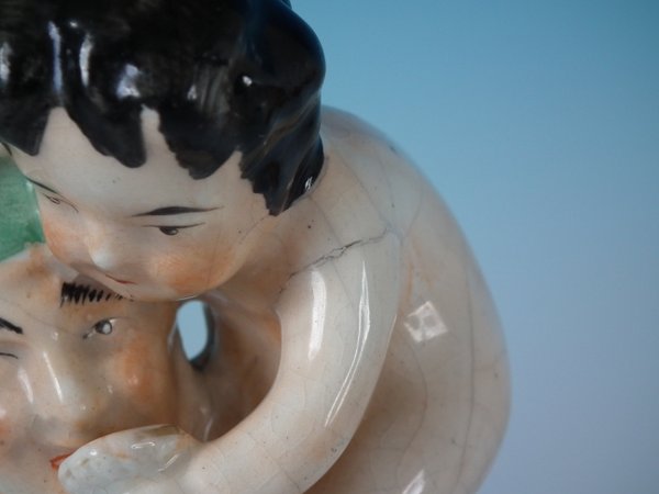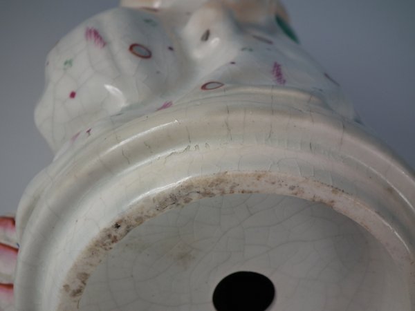 over glazed shrinkage line to the Putti's left shoulder.