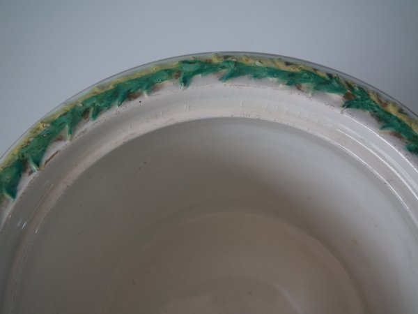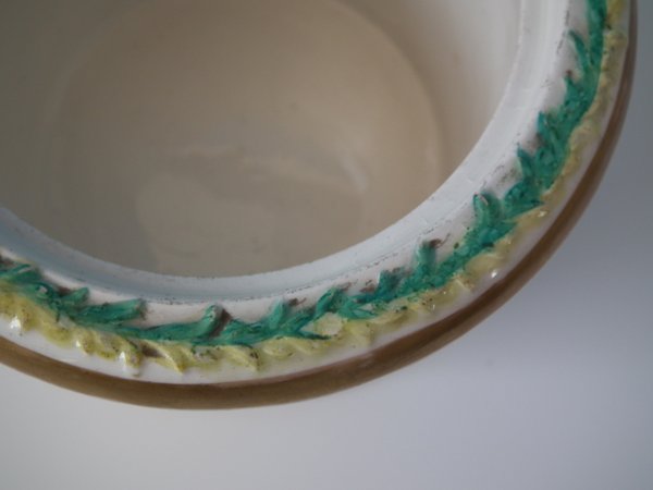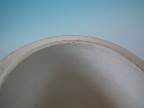 KILN EFFECTS: over glazed bruise to the flange.