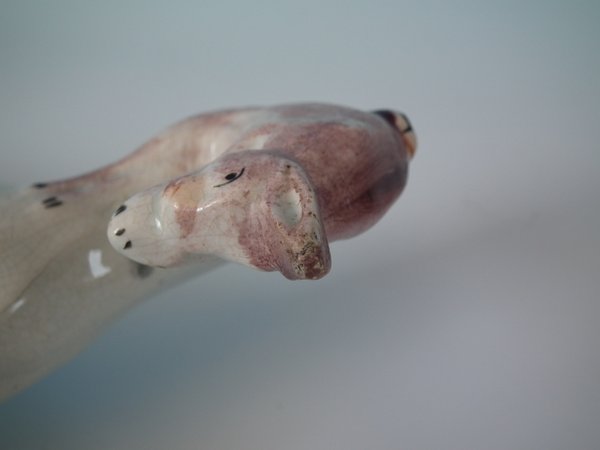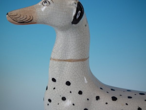 Slight abrasions to tip of hare's ears and dalmatian's left ear.