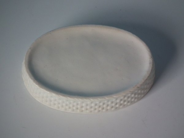 resting on an oval basketweave tureen base.