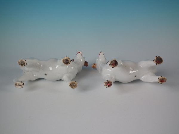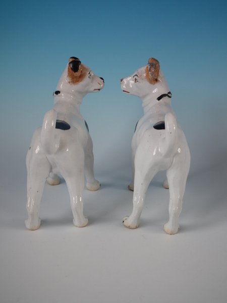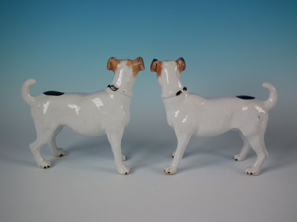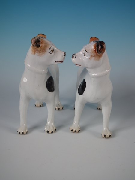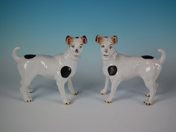 Victorian, circa 1880. Tallest is 6.1ins high, 6.3ins wide, 2.8ins depth. Pair of Staffordshire Pottery dogs which feature
