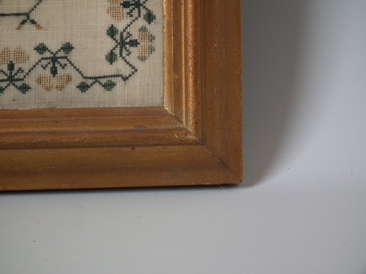 Victorian, dated 1845. 17ins by 13ins wide. 1845 Sampler by Ann Johnson. Framed in an old wood frame with rippled, old glass.