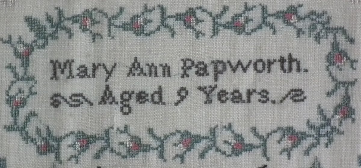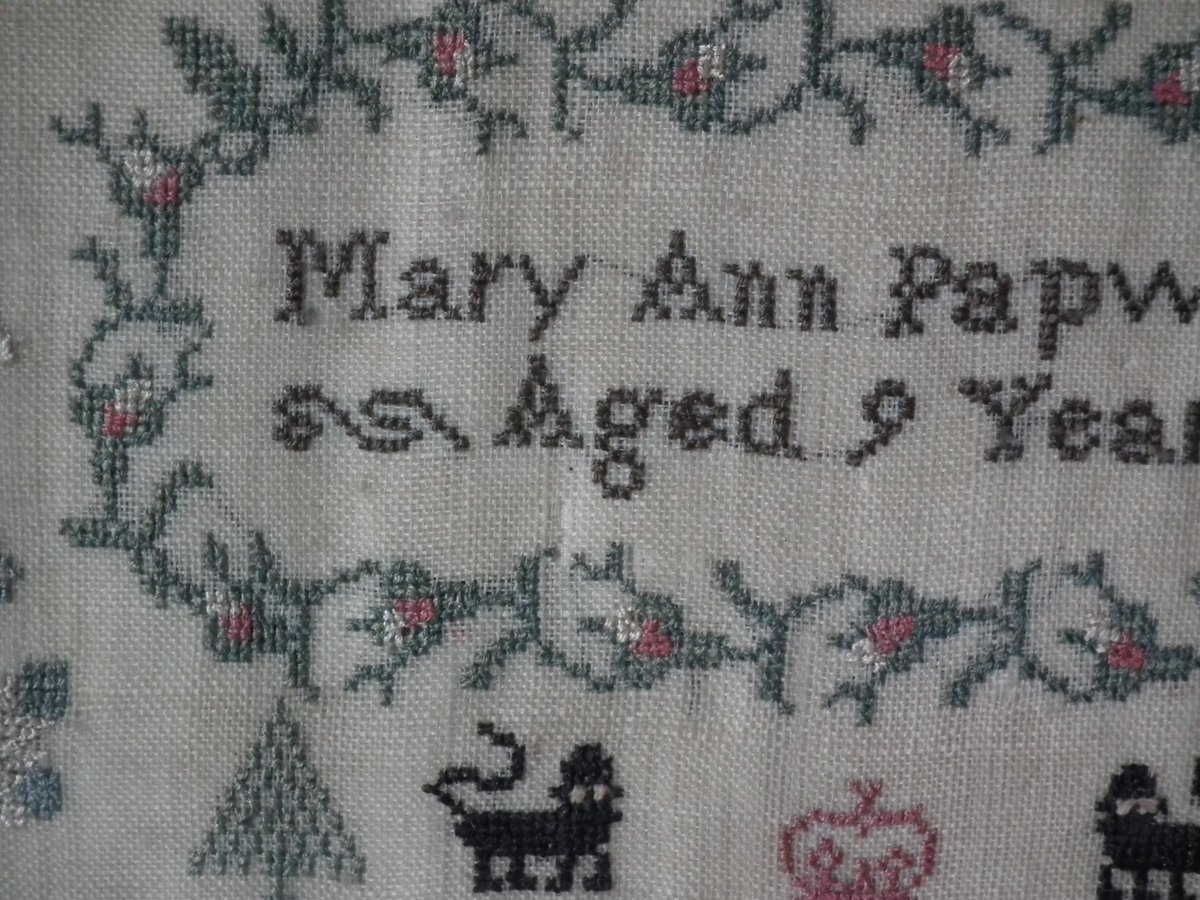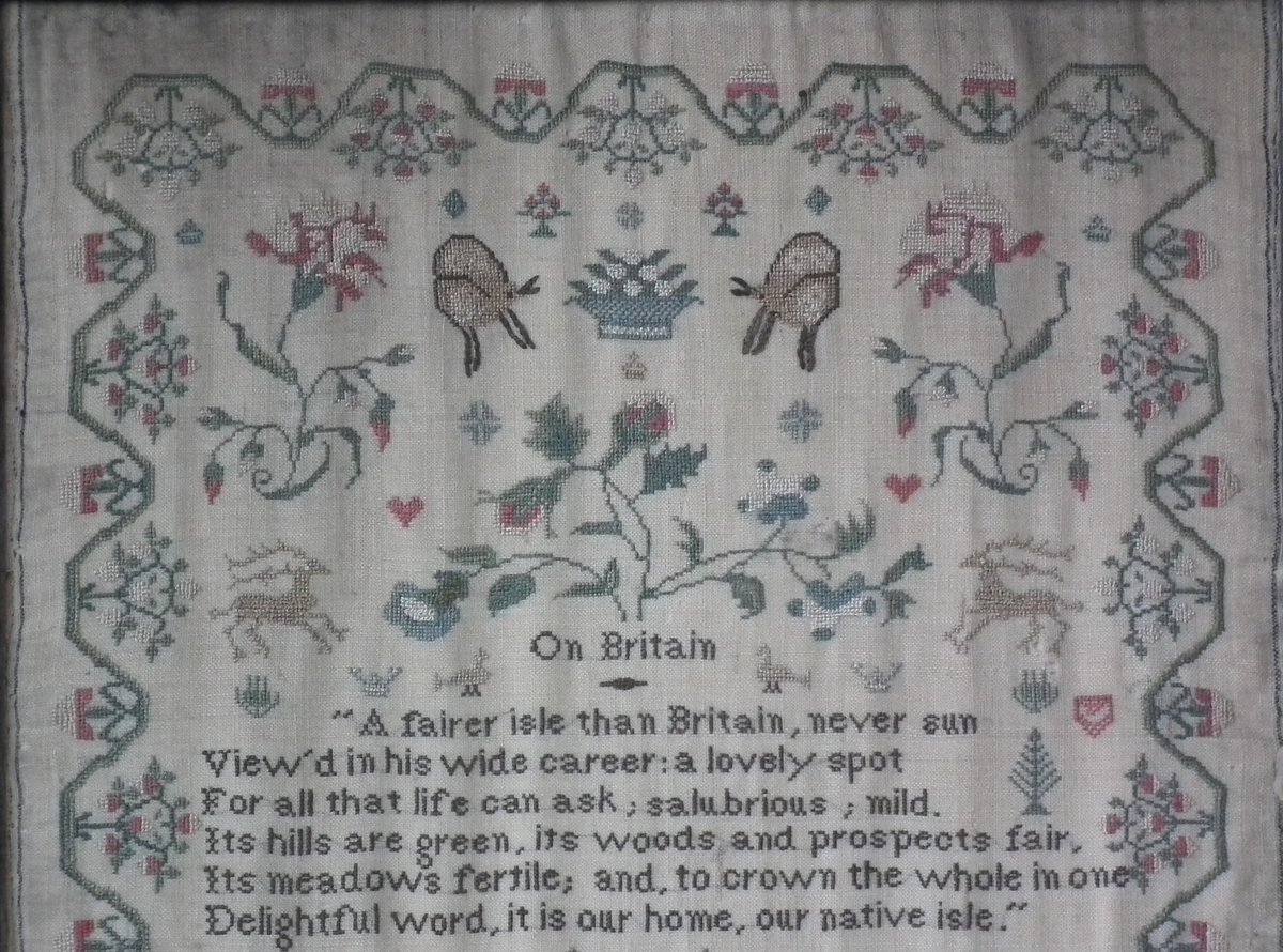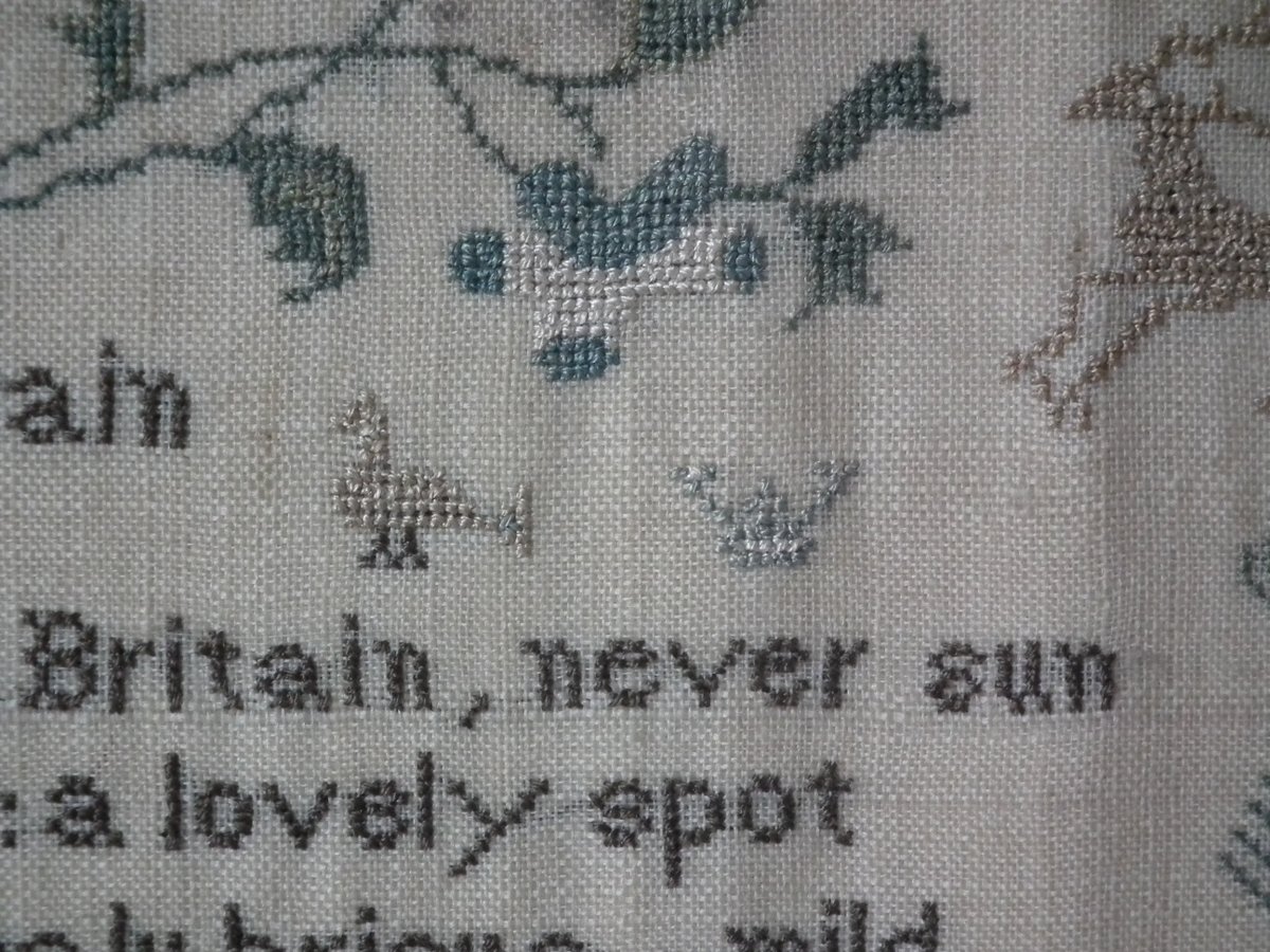 George IV, dated 1822. 17ins high by 13ins wide. Circa 1830 Mary Ann Papworth Sampler.