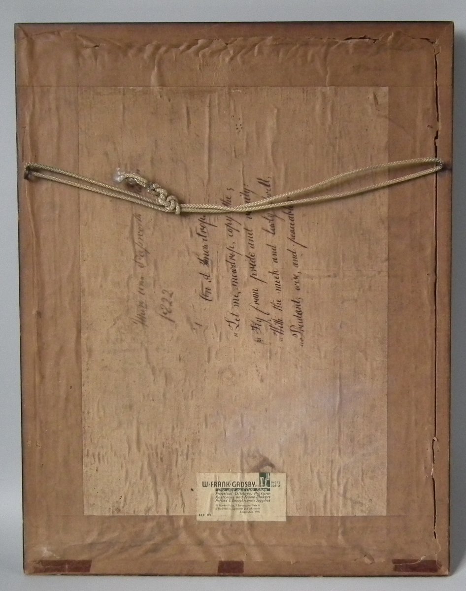 Framed in an old black, ebonised wood frame with rippled, old glass.