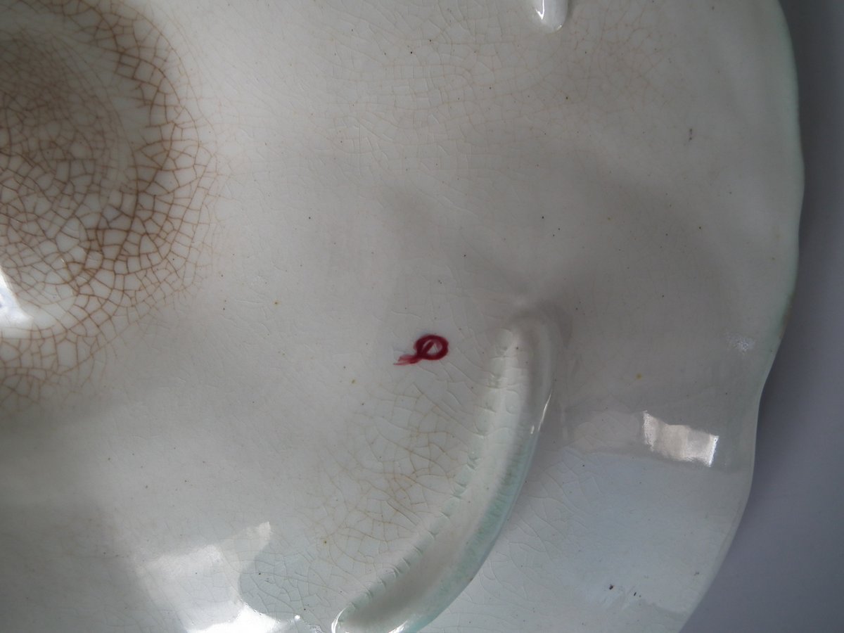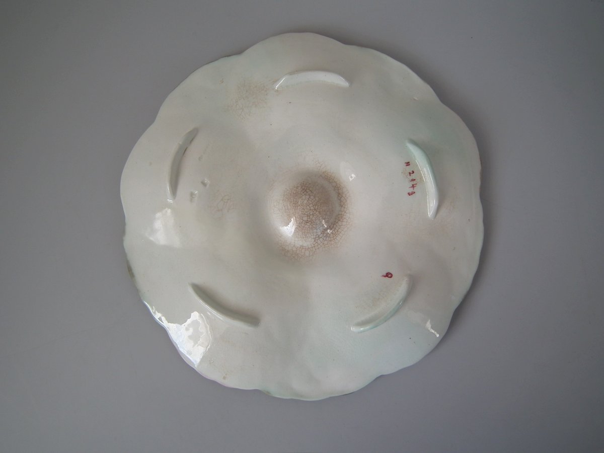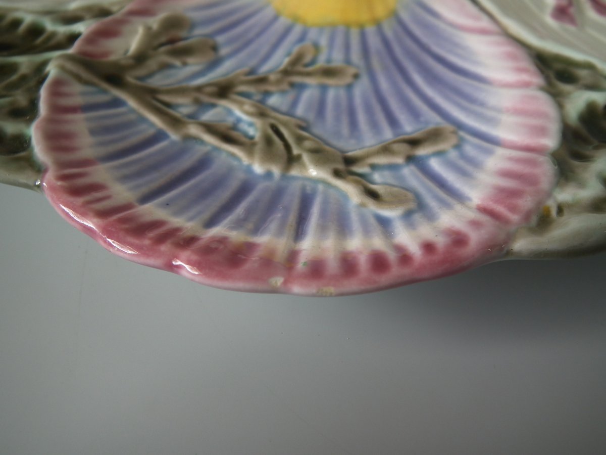 Victorian, circa 1880. 9.1ins high, 9.1ins wide, 0.8ins depth. Wedgwood Argenta Majolica oyster plate which features scallop shells, coral and wave edges.