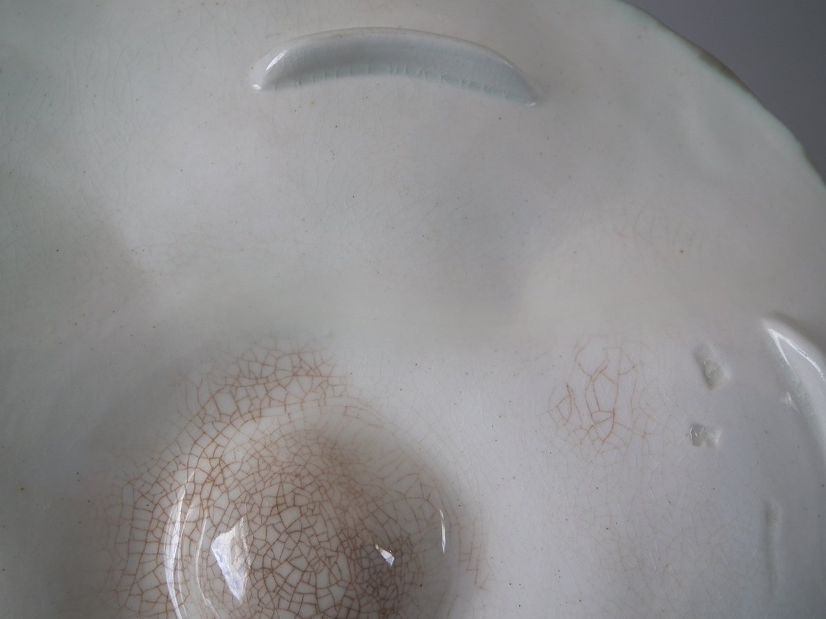 KILN EFFECTS: staining to the reverse and slightly stained crazing to one shell.