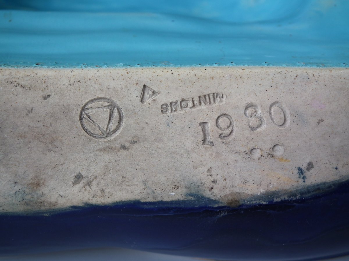 The piece bears maker's marks for the Mintons pottery. Bears a pattern number, '1980'. Marks include a factory specific date cipher for the year 1876.