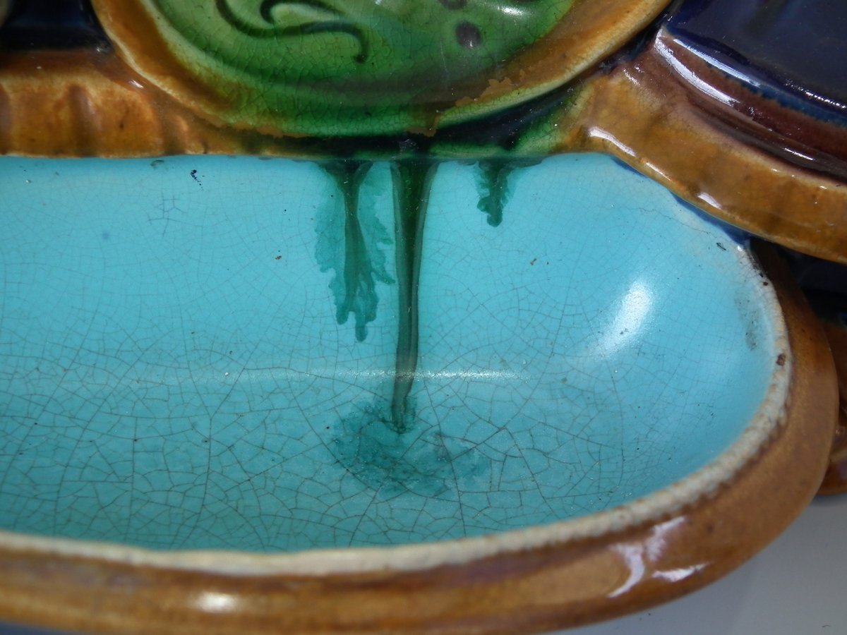 CONDITION: Generally good. KILN EFFECTS: glaze run to the green glaze;