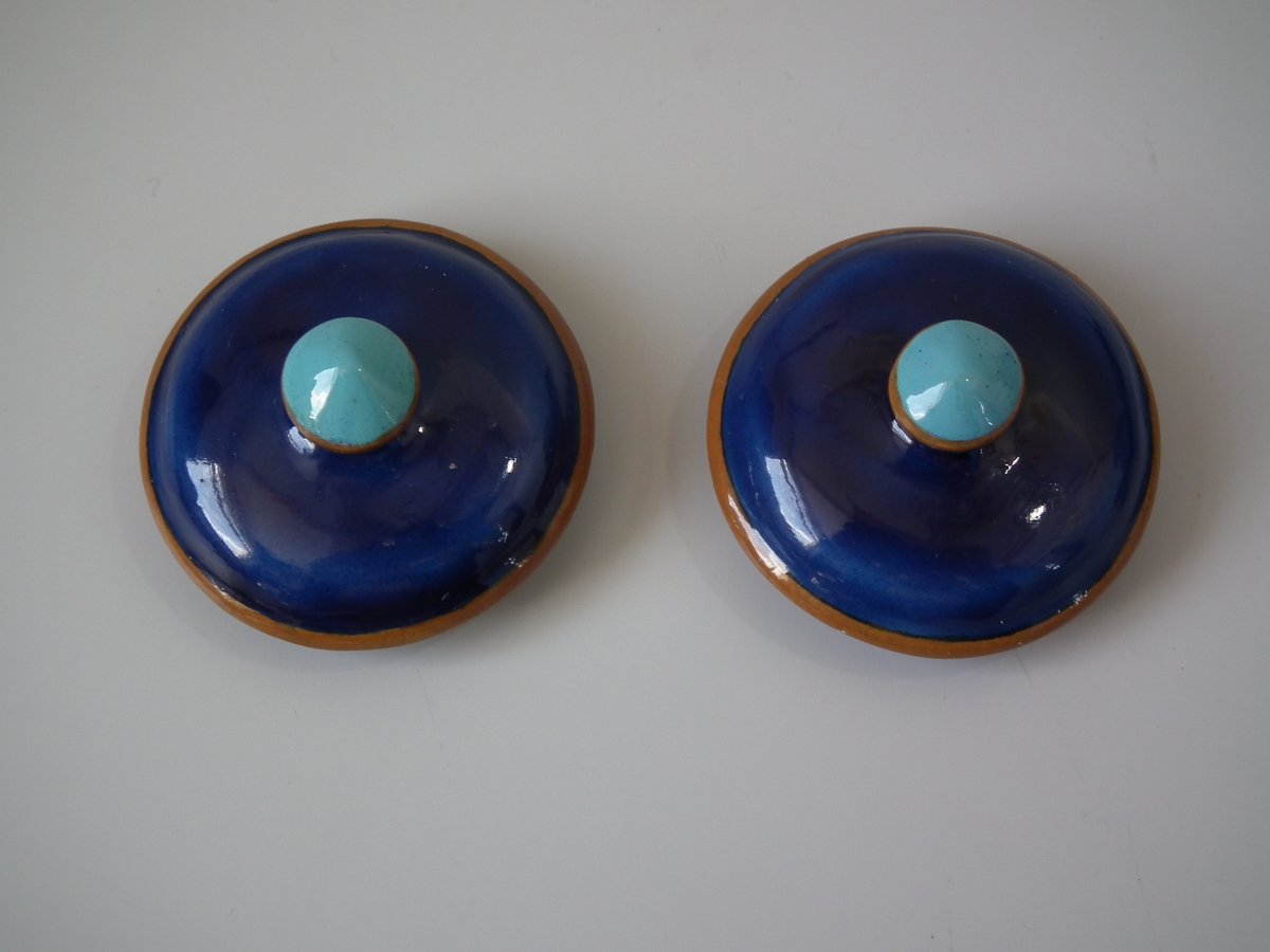 Colouration: cobalt blue, turquoise, brown, are predominant.