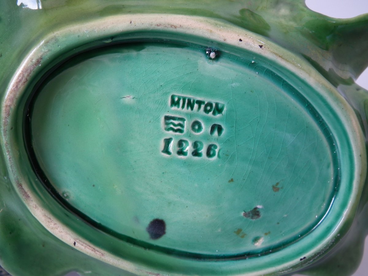 The piece bears maker's marks for the Minton pottery. Bears a pattern number, '1226'. Marks include a factory specific date cipher for the year 1865.
